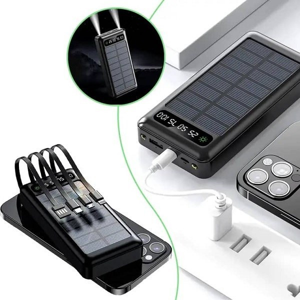 در بخش بالای پاوربانک دو عدد لامپ LED روشنایی خوبی در زمان قطع برق را ارائه می دهد. پاوربانک خورشیدی Solar Energy 4-in-1 با ظرفیت 30000 میلی آمپر ساعت قابل اعتماد انتخابی ایدهآل برای تمام نیازهای شارژ روزانه است. این مدل پاوربانک با قابلیت شارژ با نور خورشید ایدهآل برای سفر و کمپینگ و استفاده در فضاهای باز است.